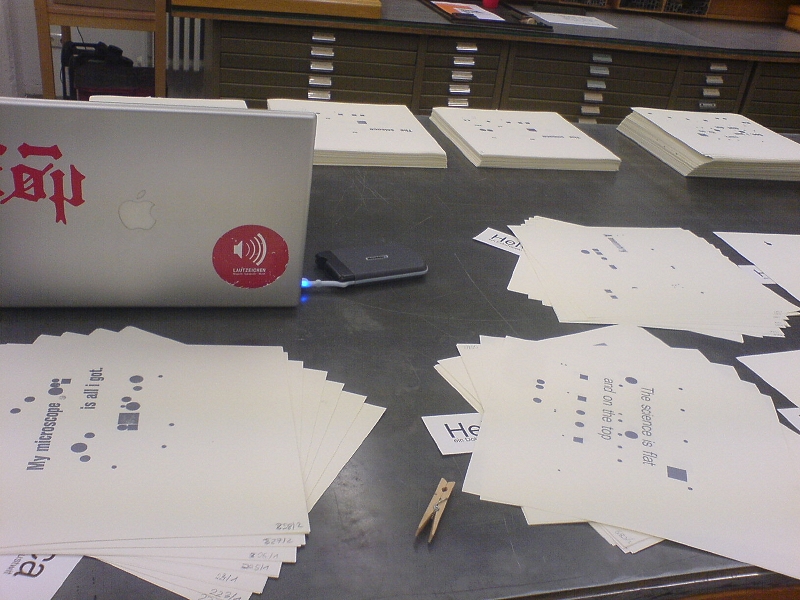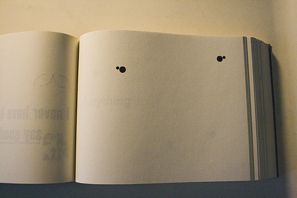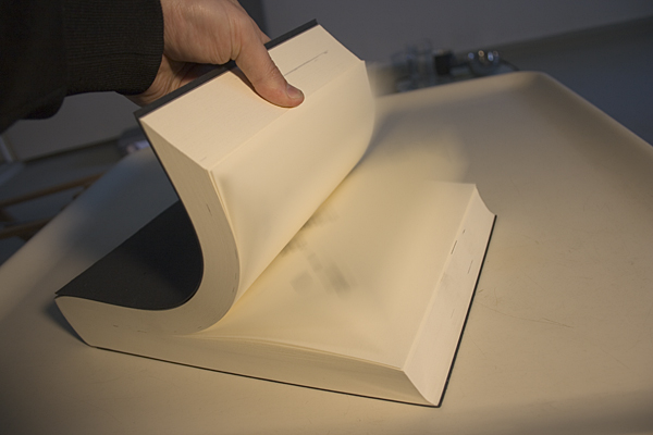 “DOT: The video as a book” is a letterpress printed artist book, containing about 300 pages that were also used for a music video for Michael Fakesch’s song “dot”, released on his album “dos”. Three copies of the book were created, containing the original prints used to produce the video. These books comprise every single frame as a lead type printed paper copy: every picture shown in the video has its materialized analogue twin. The book was printed in different shades of black and silver on 100 g/m2 feltgrained paper. The book is about 28 cm wide, 21.7 cm high and 5 cm thick. A slipcase will be produced later this year, containing the book and a high resolution DVD of the video.