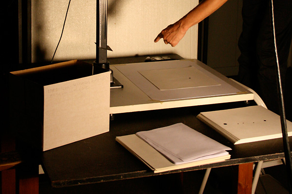 “dos” for a DVD called “vidos”. The videos should be “strictly no budget”, we were free to choose our subject. I decided to take part but quickly realised I was not equipped to be a video artist: I am a typographer. I am interested in letters, any kind of type, where ever I find it and however it is created: digitalized, animated, drawn, on posters, in films, on business cards, in books, on signage, in public space, anything. I have little experience in producing moving pictures, using video cameras, talking to actors, lighting, 3-D. Therefore I decided to stick to my field of expertise and use type. The concept was born to print a video, to create video that is both a digital sequence of images and a pile of paper.